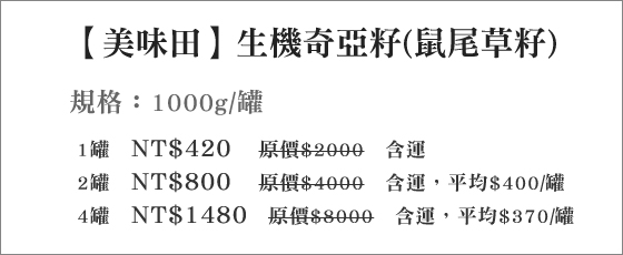 ● 史無前例的生機奇亞籽"破盤大特價"